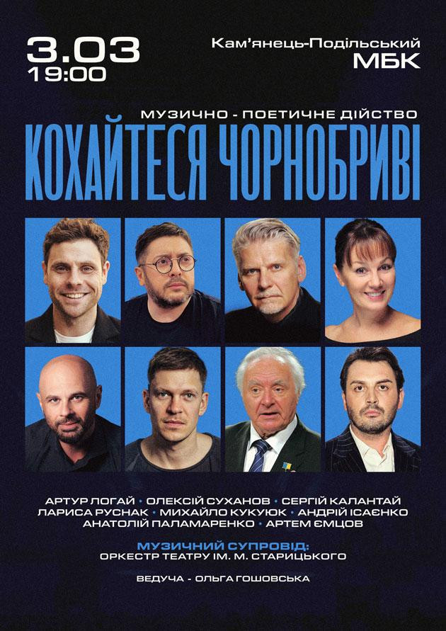 У березні глядачів шести міст України чекає особлива мистецька подія — музично-поетичне дійство “Кохайтеся, чорнобриві”, яке поєднує в собі живе слово української класики, театральну емоцію та величне звучання оркестру.